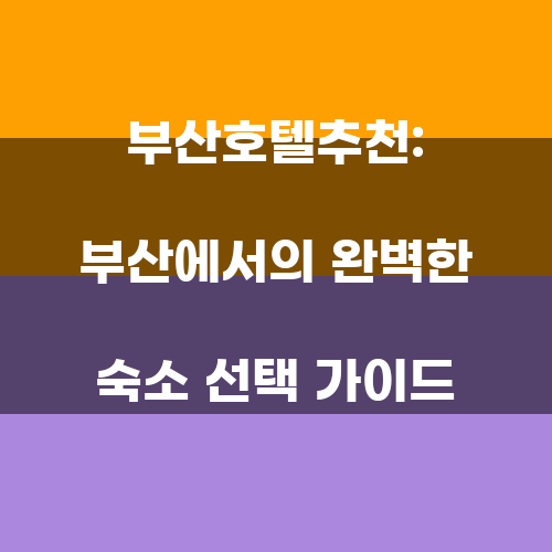 부산호텔추천: 부산에서의 완벽한 숙소 선택 가이드